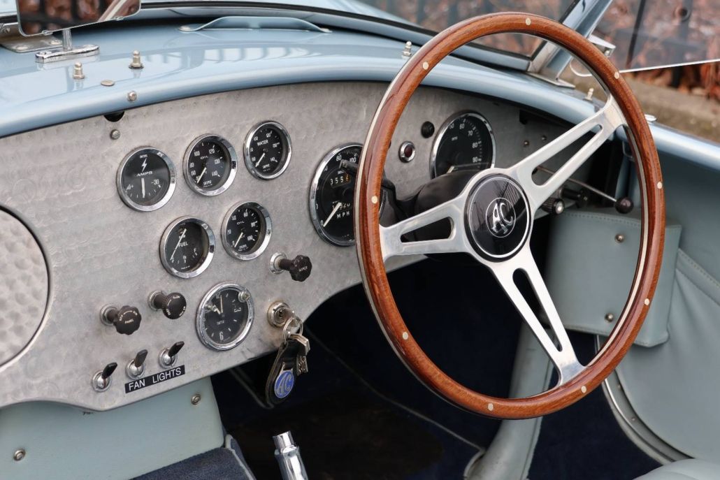 General description: 1964 AC Cobra 289 'Mark II' Roadster (RHD). 1 of approximately 45 RHD, leaf-spring '289' models. Just 3 former owners. Recorded mileage to date is only 11,900 miles from new. Restoration photographed; supplied with its original registration document. Outright winner of the Goodwood Revival Earls Court Motor show 'People's Choice' Award. The Mark II Cobra is widely regarded as one of the most usable and collectible Cobras, with roughly 528 Mark II Cobras produced up to the summer of 1965.