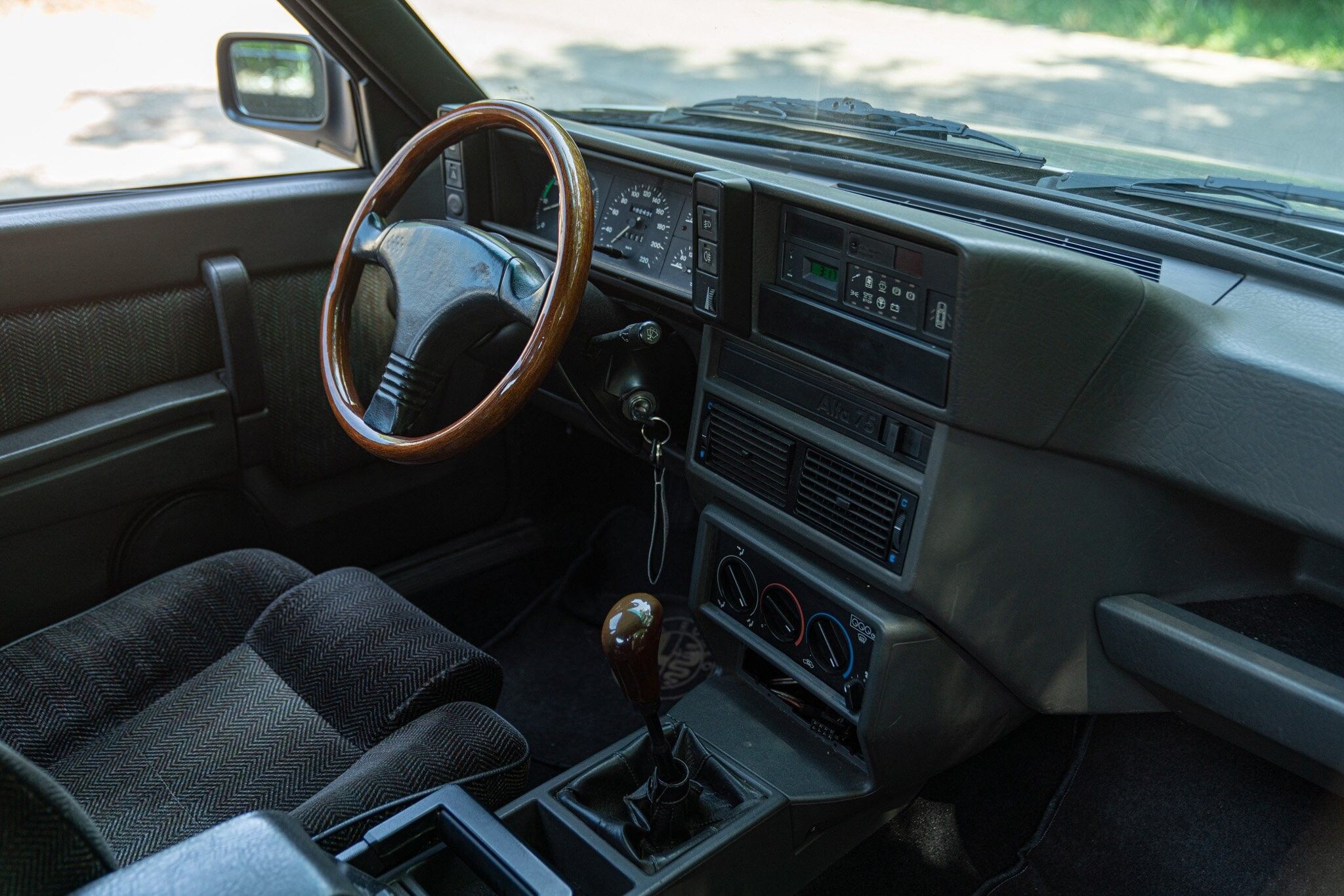 1989 Alfa Romeo 75 2.0. 1,948 cc, 4 cylinders. Year: 1989. Odometer: 192,430 km. Body: Saloon. Exterior color: Bianco Argento. Interior color: Tessuto Grigio. Transmission: Manuale. Showroom: Reggio Emilia. Code: ALF00261.