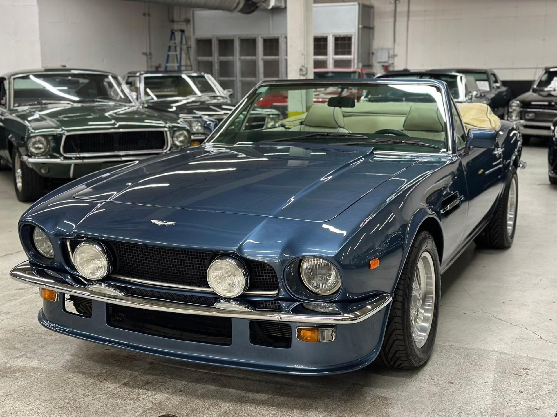 Chichester Blue metallic with Magnolia leather interior piped Dark Blue, Blue carpeting and Blue Mohair (PoW spec) convertible top, Automatic, Limited mileage since various restoration work (both cosmetic and mechanical) by UK Aston specialist restoration, Long-term Aston collector ownership, Matching numbers, Factory fuel injected and uprated 5.8 Liter Big Bore specifications. Completed at the Newport Pagnell works in June of 1987, this V8 Volante was sold new to Andrew Terrand Ltd. As judged by the superb condition today, this Aston has always enjoyed proper care and maintenance in correct and loving ownership. The V8 was then sold in 1991 to a Mr. John Pease. Showing just 13,500 miles in 1997, the V8 was sold to its 3rd owner, Mr. Charles William Cayzar of Chipping Norton. Service records for this V8 date back to 1997 and Mr. Cayzars impeccable ownership. All service work was performed by Oselli, Nicholas Mee & Co and other UK Aston Martin specialists. Some updates carried out during recent restoration include an engine rebuild and uprating to 5.8 liter Big Bore specifications, rebuild of the gearbox, new torque converter, upgraded Koni shocks with handling kit-anti-roll bars, Vantage front air dam, 16-inch Ronal wheels and new exhaust system. Having been in the UK since new, it was purchased in 2016 by a good client and friend of Autosport Designs, a Texas based collector and imported to the United States. Before leaving the UK, Oselli performed the conversion from Right-hand drive to Left-hand drive, completely re-trimmed the interior in new Magnolia leather upholstery and fitted a new (PoW spec) cloth convertible top. Engine work included a complete rebuild to X-Pack plus fuel injected specifications. June 2020 saw this Aston traded to Autosport Designs towards another automobile from our inventory. At this time, the new owner decided to color changed this V8 Volante from Rolls Royce Midnight Blue Met. to his favored Aston color, Chichester Blue. All work was undertaken and photo documented by Autosport Designs and we have serviced and maintained this V8 Volante since. Although not a Vantage with carburetors, this Big Bore specification creates even more horsepower and torque than a standard X-Pack Vantage. On a recent road test, it has ample horsepower and torque which is well suited to the automatic transmission. This V8 Volante is excellent in all respects and has always been serviced and maintained by well-known Aston Martin specialists. It is complete with original owners handbook, tool kit, and large ownership and service file. This V8 Volante is powerful on the open road, yet docile around town and sure not to disappoint in any way.