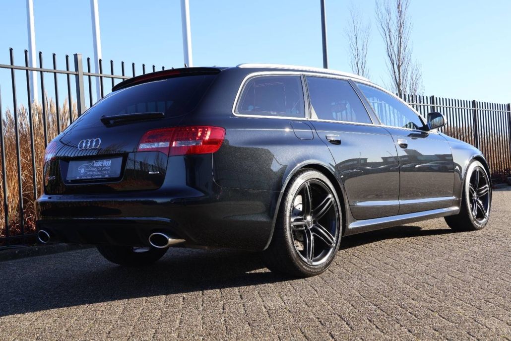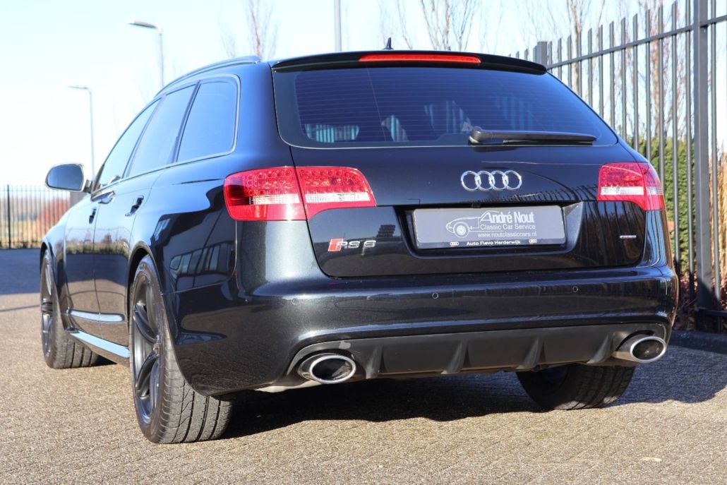 A rare opportunity for the true enthusiast: this 2008 Audi RS6 C6 Avant is presented in absolute pristine condition, combining timeless design with uncompromising performance. This vehicle was originally delivered new in the Netherlands by Auto Flevo in Harderwijk and comes with an exceptionally well-documented history. The car is offered by its second owner, who has owned it since 2012. Both the first and second owners have had the vehicle exclusively maintained by Audi main dealers, resulting in a complete and fully documented service history, which is of course present and available for inspection. Finished in elegant black metallic with a luxurious black leather interior, this RS6 exudes both sophistication and sportiness. The car is equipped with every available factory option and has been meticulously cared for down to the finest detail. Both cosmetically and mechanically, this RS6 is in a condition that is rarely seen today. Under the bonnet lies the true highlight of this RS6: the legendary 5.0-litre V10 TFSI twin-turbo engine, developed using motorsport-derived technology. Producing an impressive 580 hp and 650 Nm of torque, it accelerates from 0 to 100 km/h (0–62 mph) in just 4.5 seconds—performance that remains highly impressive even by modern standards. Power is delivered seamlessly to the road via Audi’s renowned quattro all-wheel-drive system and a fast-shifting Tiptronic automatic transmission, ensuring maximum grip and confidence in all conditions. What truly sets the RS6 C6 apart is its unique ability to combine supercar-level performance with the comfort, refinement, and practicality of an Avant estate. The V10 is celebrated not only for its immense power but also for its deep, distinctive soundtrack, making every drive a memorable experience. This is far more than just a fast estate car—it is an engineering icon from an era when Audi built without compromise and a true future classic. Key Highlights: - Audi RS6 C6 Avant | 2008 - Originally delivered new in the Netherlands - Only 2 owners from new - Second owner since 2012 - Fully Audi dealer maintained - Complete service history present - Black metallic exterior with black leather interior - Fully optioned - Absolute pristine condition