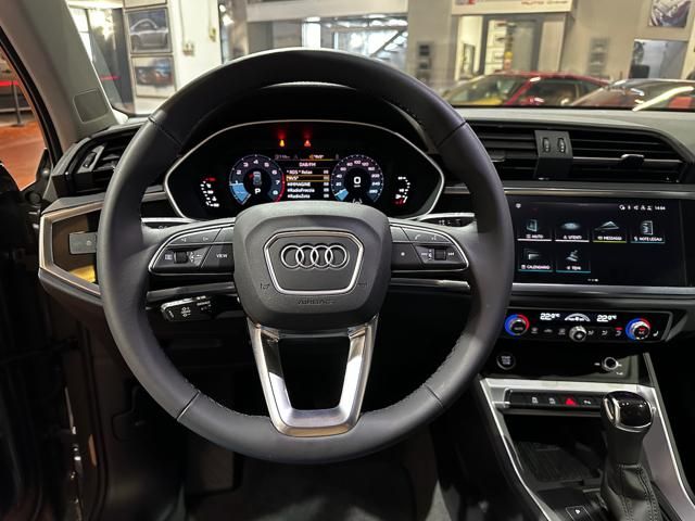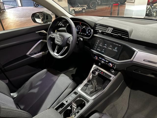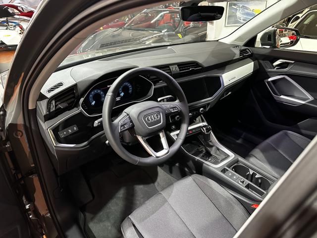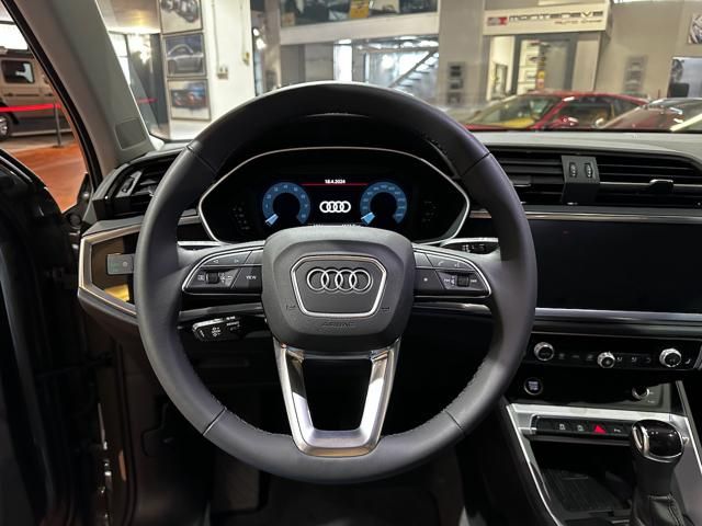 AUDI Q3 35 TFSI MILD HYBRID 150CV. Used, registration year 09/2023. Color: Chronos Grey pearlized exterior; interior: Fabric Anthracite. Fari Full LED, Virtual Cockpit, S tronic automatic 7-speed transmission, Advanced Drive Assist, Lane Assist, Brake Assist, Audi Connect, Apple CarPlay, Android Auto, Navigation, DAB Radio, Bluetooth, USB, Parking Sensors, 18-inch alloy wheels, Traction AWD, 5 seats, 5 doors. Displacement 1498 cm³, power 110 kW / 150 CV, Euro 6d. Fuel: Gasoline. Price: €33,900. VIN not provided.