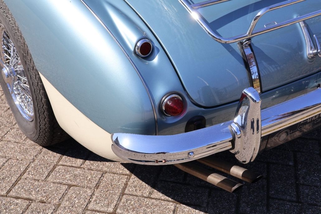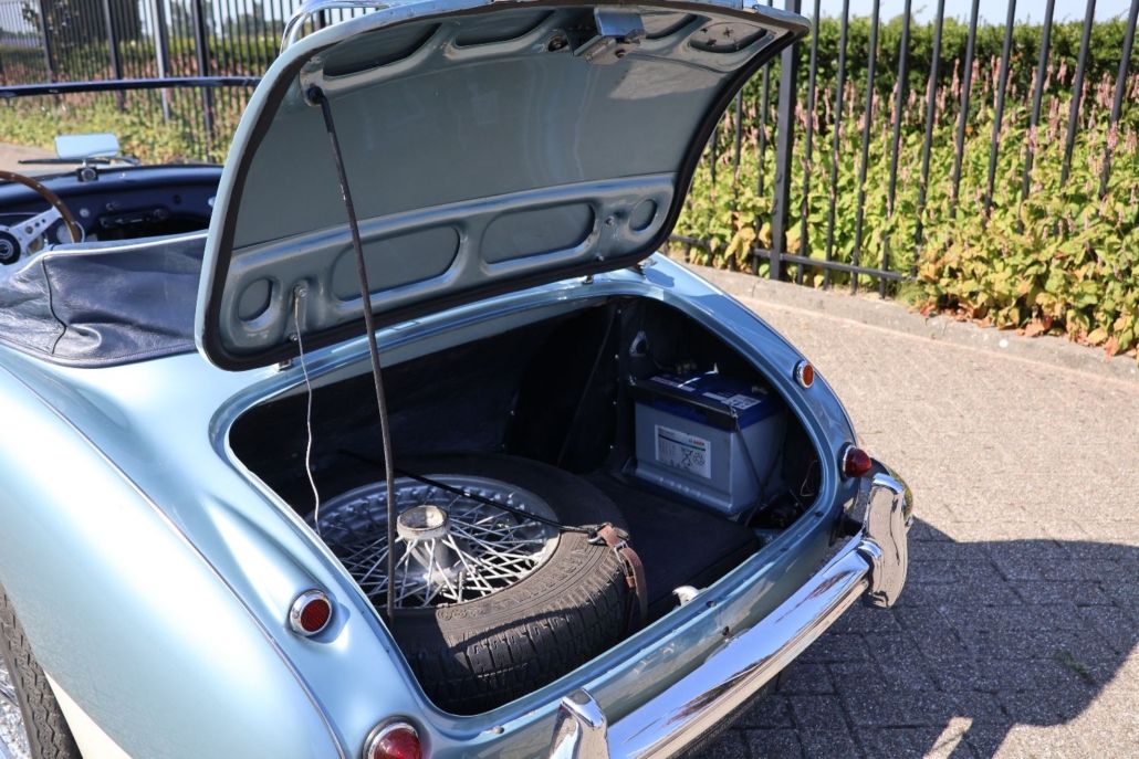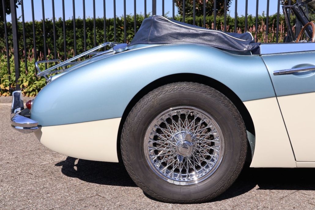 This Austin Healey 3000 MK2a BJ7, built in February 1963, is a beautiful example of British sports car craftsmanship from the golden era. With only 18,138 miles on the clock, this roadster exudes the authentic charm and pure driving experience that made the Healey legendary. The BJ7 is widely regarded as the most desirable version of the 3000 series, thanks to its classic dashboard, the convenience of the practical winding windows, and the smoothly operated soft top. The interior breathes vintage sportiness with comfortable, original upholstery and a wooden steering wheel, perfectly matching the timeless character of this roadster. Under the hood resides a strong 3.0-liter inline-six engine delivering 130 hp, paired with a manual gearbox featuring overdrive. This setup provides a distinctive sound and a direct, enjoyable driving experience with plenty of control and responsiveness. This Healey has undergone a full body-off restoration in the past, with great care taken to preserve original details and craftsmanship. The bodywork is straight and rust-free, finished in a glossy Healey Blue over White - widely considered the most beautiful color combination on an Austin Healey. The chrome and authentic details have also been meticulously restored, resulting in an impeccable appearance. The car comes equipped with a nice list with options such as: Chrome wire-wheels with wide 185/15 tyres, Moto-lita steering wheel, aluminium gearknob with overdrive switch, badgebar with foglights, bigger cooling fan, 123 electronic ignition, alternator conversion, kenlowe fan, aluminium cam cover, and a chrome luggage rack on the trunk. Whether you're cruising leisurely through the countryside or taking part in a classic rally, this Austin Healey 3000 MK2a BJ7 combines elegance with sporty performance and comfort in a unique and timeless way. An absolute must-have for enthusiasts of British roadsters and classic cars.