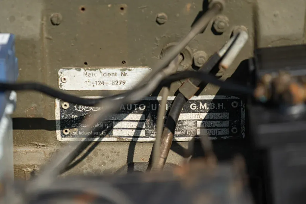 Model: F91 "MUNGA". Displacement: 896 cm3. Cylinders: 3. Year: 1957. Registration: None. Odometer: 68063. Body: Off-road vehicle / 4x4. Exterior color: VERDE MILITARE. Interior color: BEIGE. Transmission: Manuale. Showroom: Reggio Emilia. Code: DKV00002.