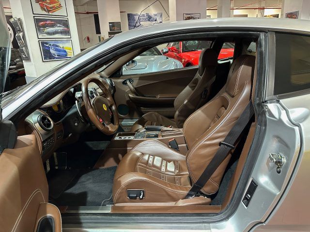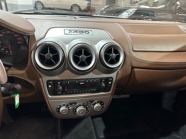 FERRARI F430 F1 COUPE' 490CV CONFIGURAZIONE UNICA SU CAMPIONE ARGENTO URBURGRING METALLIZZATO\nPELLE TOTALE EXTRACAMPIONARIO MARRONE\nSEDILI DAYTONA\nREGOLAZIONE SEDILI ELETTRICA\nPELLE ESTESA\nCIELO IN PELLE\nCANNETTATURA POSTERIORE PELLE\nCUCITURE SU CAMPIONE\nVOLANTE IN PELLE MARRONE EXTRASERIE\nINSERTI PLANCIA ALLUMINIO\nNAVIGATORE\nIMPIANTO HI FI FERRARI ALTA POTENZA\nSCUDETTI\nFRENI CARBOCERAMICA PINZE ROSSE\nCARICATORE CD\nSISTEMA BLUETOOTH FERRARI\nFARI XENON\nTUTTA LA DOTAZIONE ORIGINALE\nLIBRETTI USO MANUTENZIONE\nLIBRETTO TAGLIANDI ORIGINALE\nPORTADOCUMENTI IN PELLE\nTELO COPRIVETTURA\nMANTENITORE DI CARICA\nTAGLIANDATA