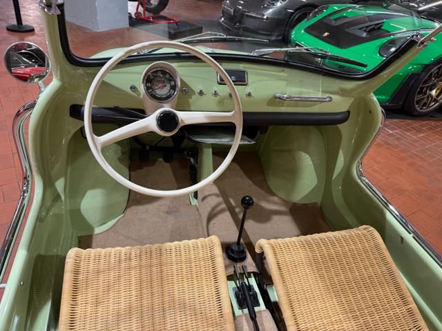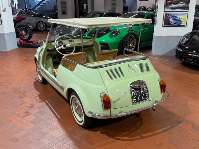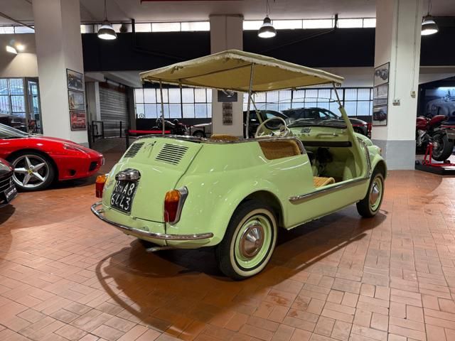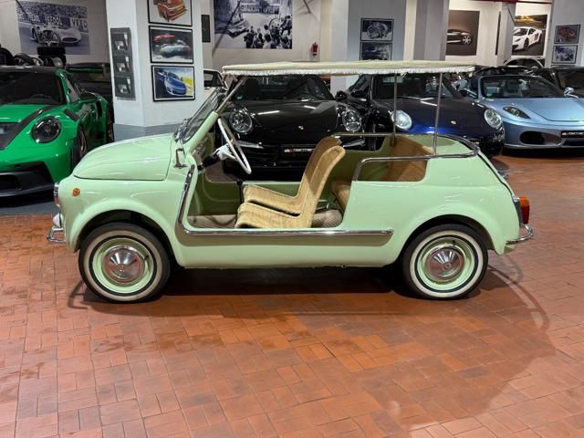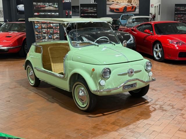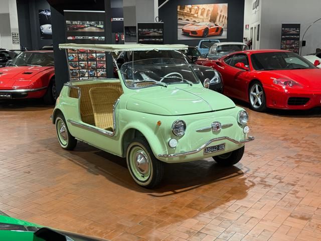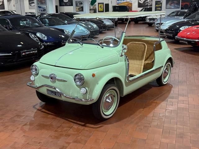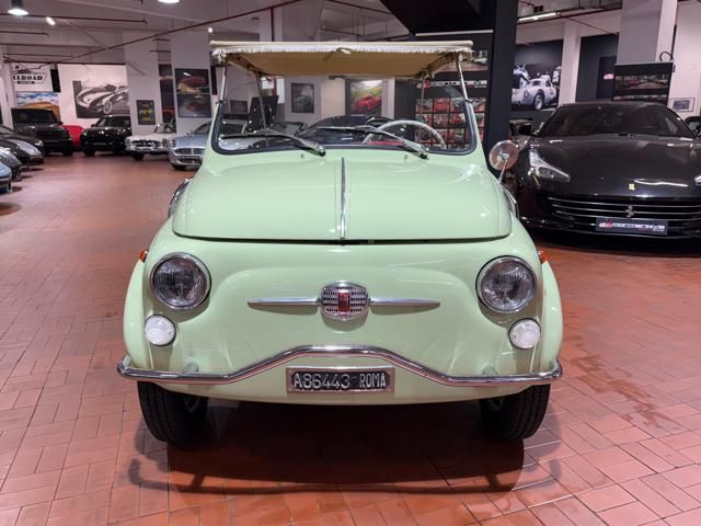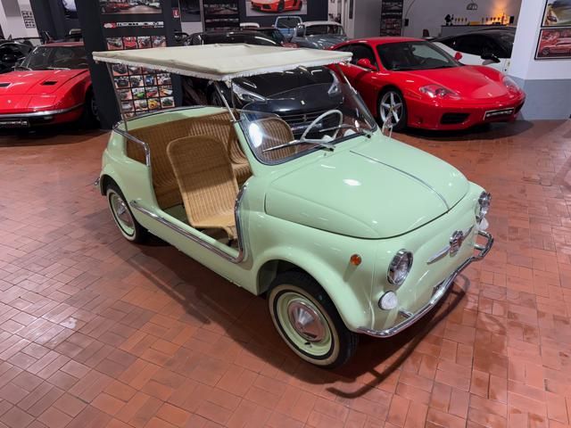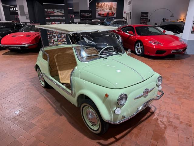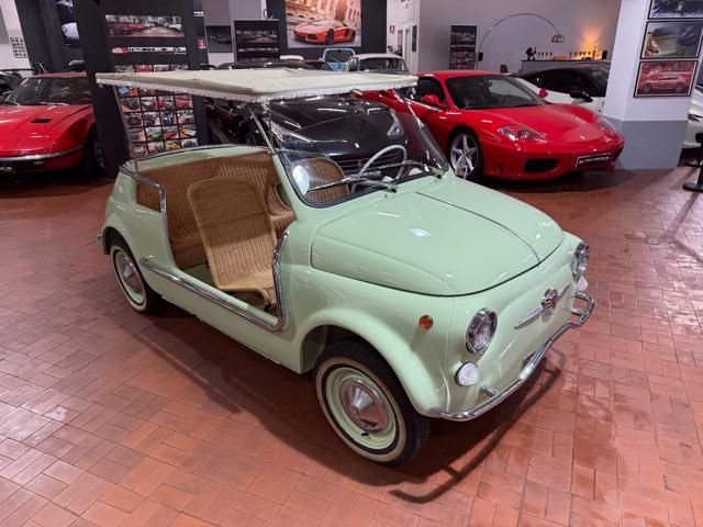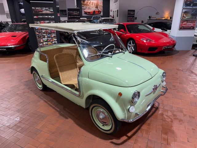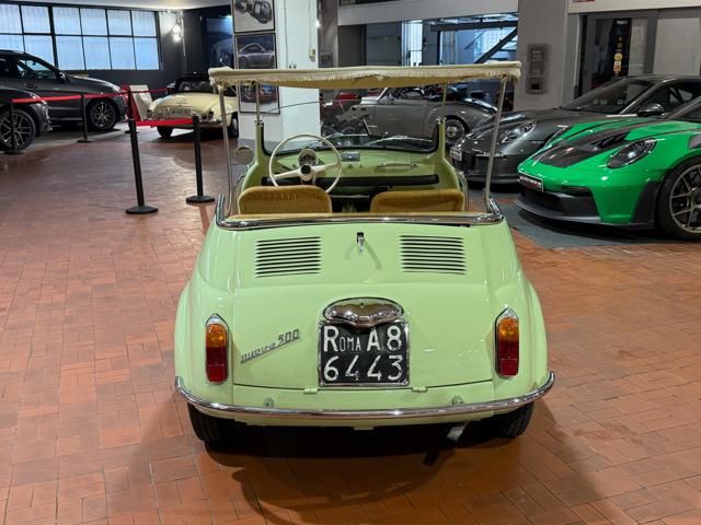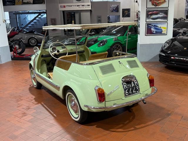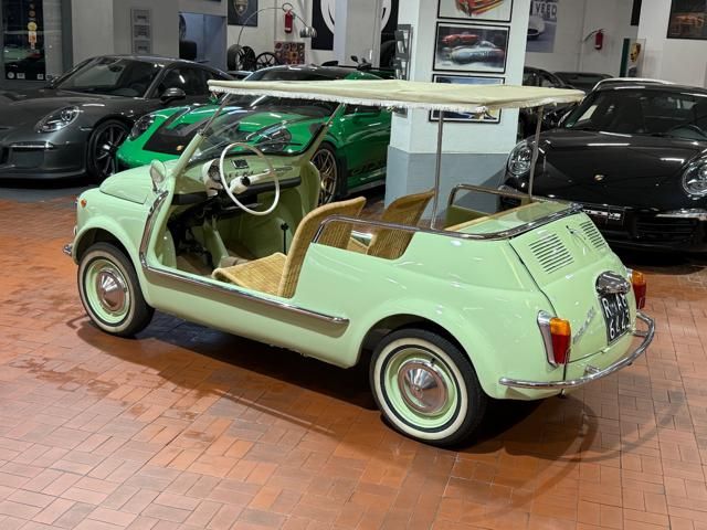FIAT 500 "SPIAGGINA" - ANNO 1967 - RIPRODUZIONE JOLLY GHIA - OMOLOGAZIONE FIAT 110 F 500 APERTA A LIBRETTO\n\nVerde Menta Pastello\n\nSedili intrecciati in vimini\n\nVolante bianco\n\nPavimento dotato di tappetini beige\n\nLamierato interno in tinta con la carrozzeria esterna\n\nCappottina parasole in tela removibile\n\nStruttura metallica per cappottina\n\nCromature decorative\n\nSpecchietto retrovisore cromato\n\nRuota di scorta vano anteriore\n\nPneumatici a fascia bianca\n\nKit attrezzi d\'epoca completo\n\nCarrozzeria del veicolo da libretto : Aperta\n\nRESTAURO COMPLETO DEL 2022\n\nTarga originale Roma\n\nUltima revisione 10/2024\n\nVisibile presso la nostra sede di via A.De Viti de Marco 48 Roma\n\nPer informazioni contatto diretto:\n\nFederico Anversa cell. 0039 3939487504\n\nTommaso Costantini cell.0039 3887401695\n\nGiovanni Perrone cell. 0039 3314258346\n\nTelefono ufficio 0039 06.83779867\n\nPER MAGGIORI FOTO VISITA: www.Montenevegroup.it\n\nWe speak english-Wir sprechen deutsch