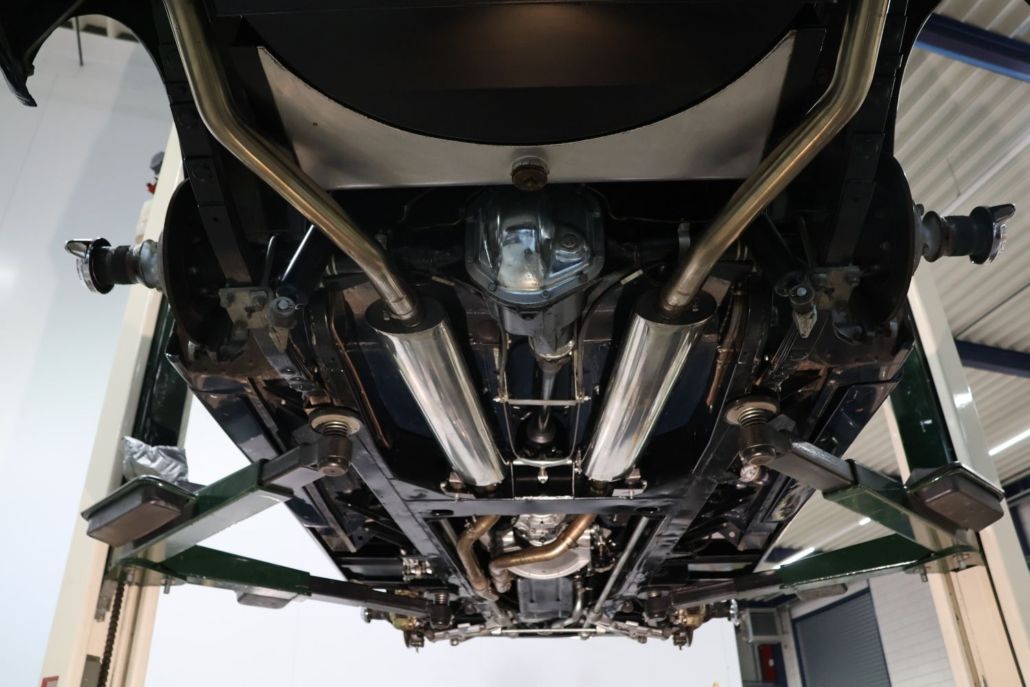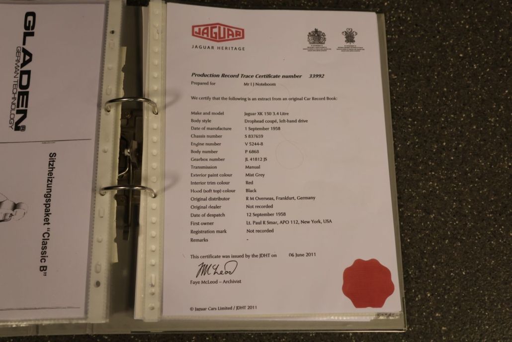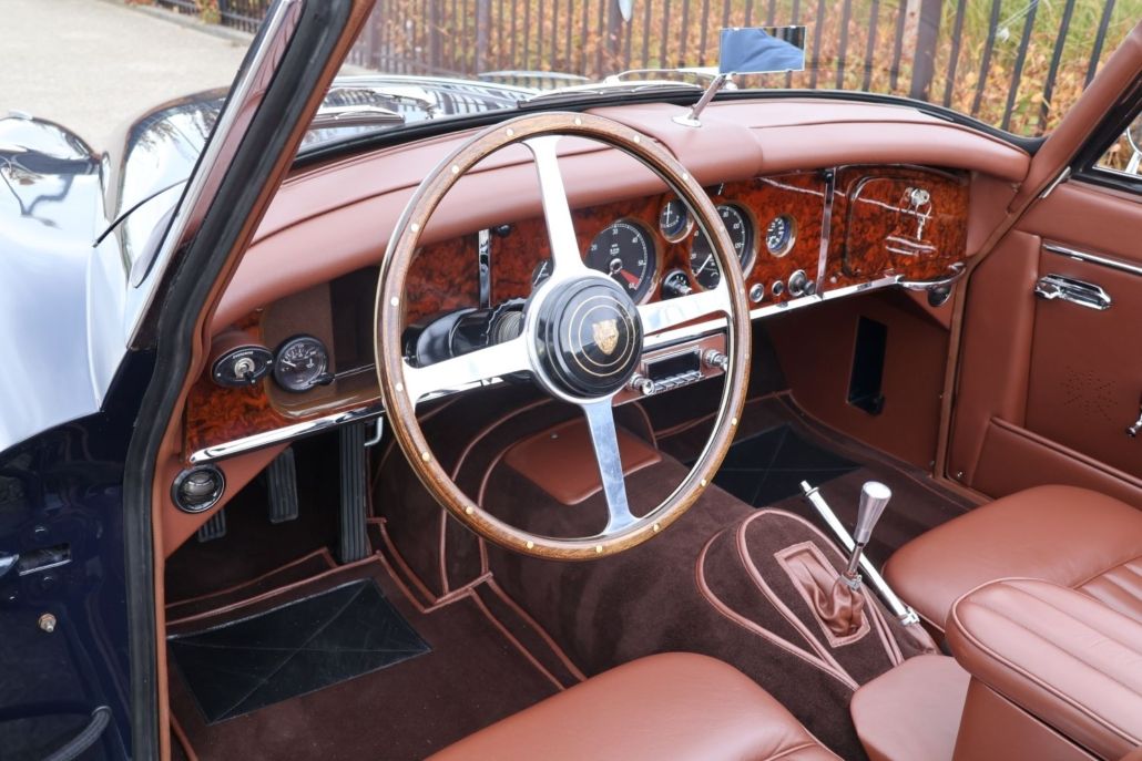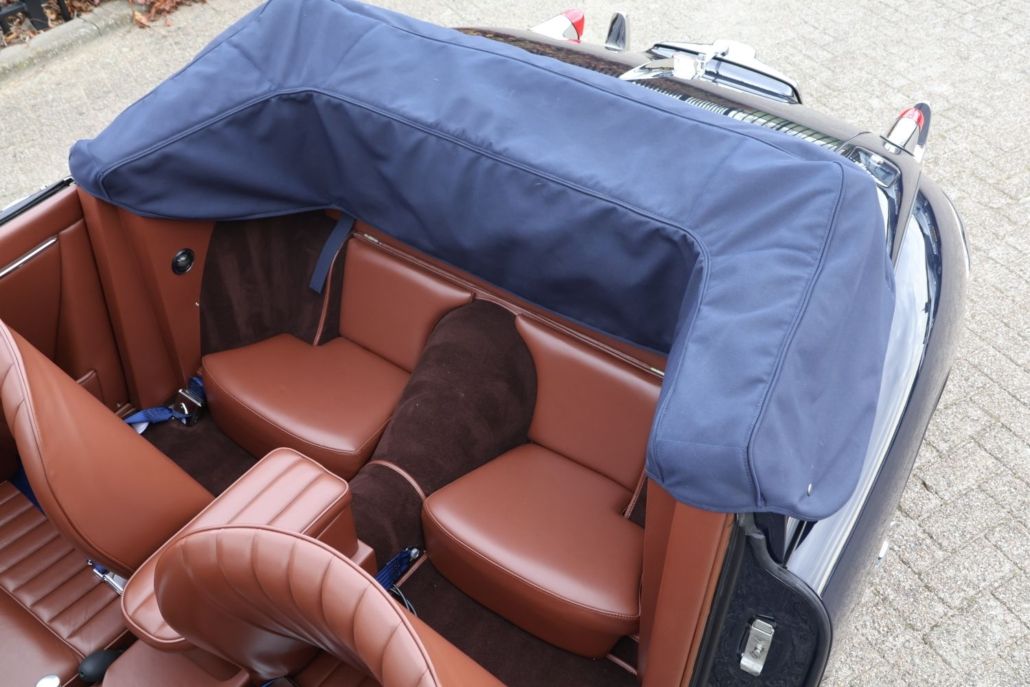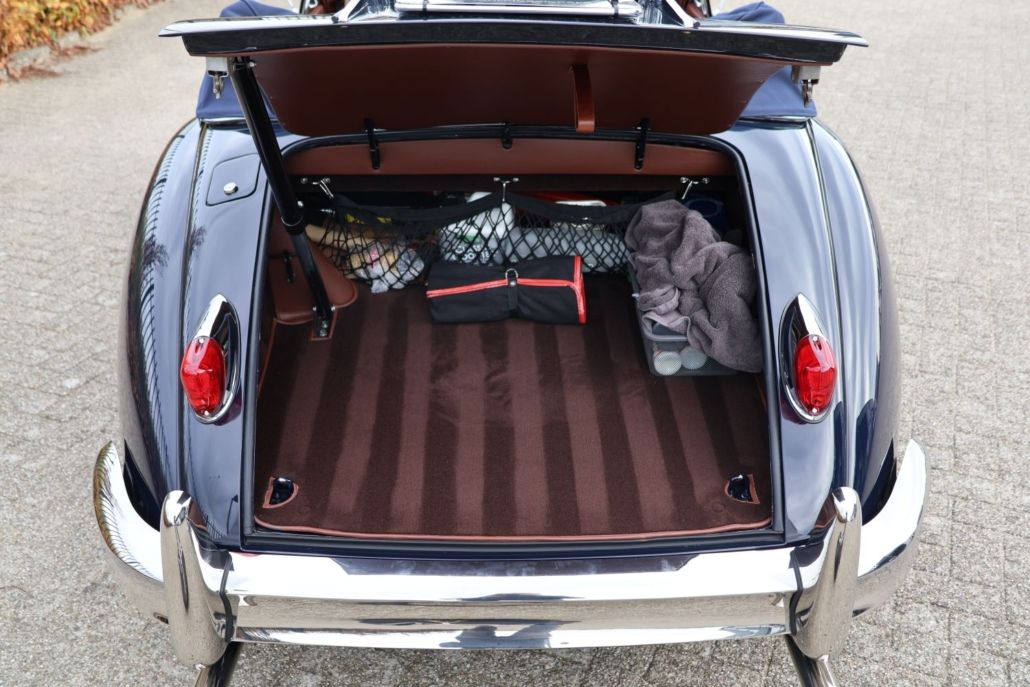 The Jaguar XK150 DHC is considered by many to be the best and most practical configuration in the XK series! In addition to its stunning looks and powerful six-cylinder engine, this model also offers the most spacious seating position and the best convertible top. A few years ago, a client asked us if we could find him such a car and then restore it to top condition according to his wishes. Of course, we jumped at the chance. A suitable candidate was found and purchased in Germany, after which the restoration began. Starting with a bare chassis, a perfect powertrain was created, equipped with every conceivable option. A five-speed gearbox, heavier Coopercraft brakes, and full stainless steel wire wheels are just a few of the features. Everything was also galvanized, sandblasted, powder coated, and finished to perfection. Van Giersbergen Motorrevisie built a slightly tuned engine, which was of course also equipped with all the upgrades. A 2-inch stainless steel exhaust system from Classic Fabs UK then provides the most beautiful sound imaginable. After we had repaired the body, it was completely spray-painted and polished at Classic&Exclusive carpainting. Once we had completely rebuilt the body and chassis, it was taken to one of the best upholsterers in the Netherlands, where, in consultation with the owner, a huge list of upgrades was carried out on the interior, which was upholstered in the finest leather. How about bucket seats, heated seats, lumbar supports, walnut dashboard, a state-of-the-art audio system, fully upholstered trunk, storage compartment with USB connection, etc.? Other options we have installed include electric power steering, a Moto-Lita wooden steering wheel, oil temperature gauge, high torque starter motor, aluminum brake fluid reservoirs, alternator, electric cooling fan, etc. The result is an exceptionally chic and stylish Jaguar that drives perfectly! A car that can be seen anywhere and can be used for any conceivable trip or (touring) rally. When building this car, budget was not a consideration; only quality and exclusivity mattered. We would be happy to tell you all about it during a visit to our showroom, where the complete file with photos and invoices from the restoration is also available for inspection.