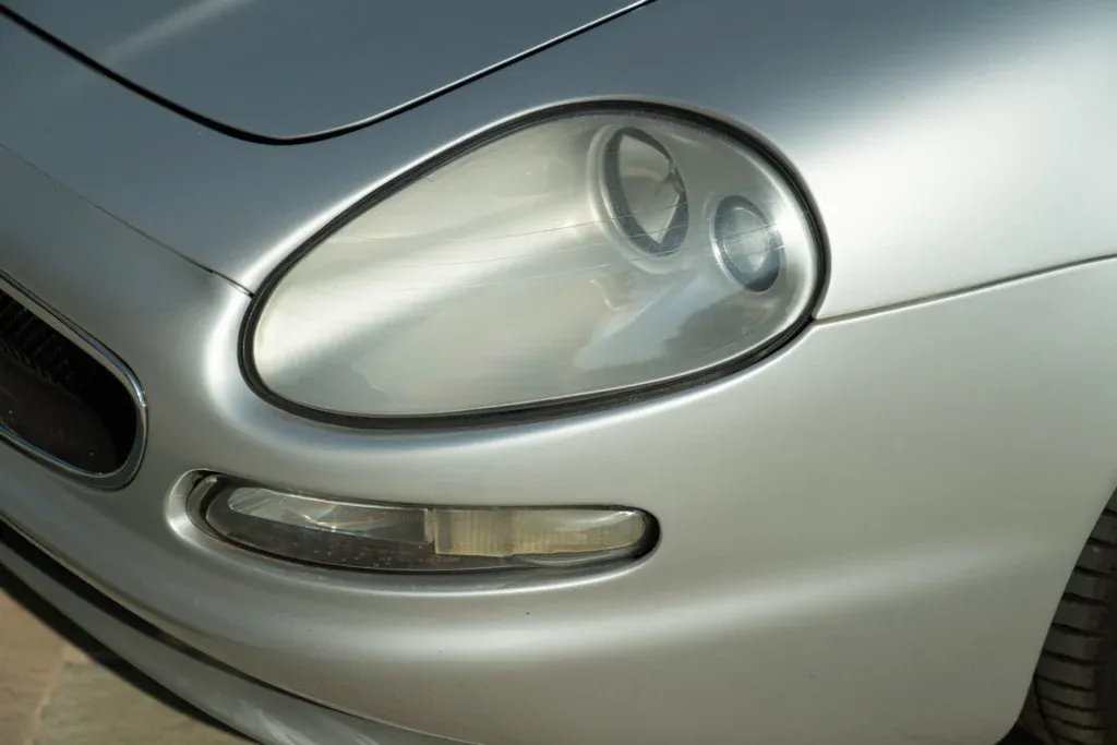 Model: 3200 GT, displacement 3200, V8. Year: 2000. Odometer: 98,294 km. Body: Coupé. Exterior color: Grigio Touring Metallizzato. Interior color: Bordeaux. Transmission: Manual. Showroom: Reggio Emilia. Code: MAS00061.