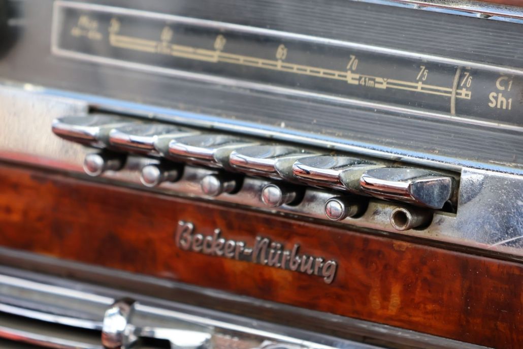 Mercedes-Benz 300 S Cabriolet, one of the world's most exclusive post‑war automobiles. The 300 S Cabriolet was produced in limited numbers (760 S/Sc with 203/49 cabriolets). This particular car is described as being almost completely original, with a Bordeaux leather interior in patina and the original Becker Nurburg radio. The engine has been recently completely overhauled, including the clutch and the entire cooling system, with a new radiator and heater radiators installed. Apart from a simple outside respray, the car remains in original condition, offering the new owner the choice of keeping it running in original form or restoring it to concours condition.