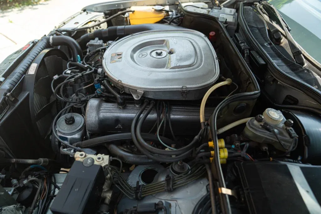 Model: 380 SEC; Displacement: 3839 cc; Cylinders: 8; Year: 1982; Odometer: 215411 km; Body: Coupé; Exterior color: Celeste Carta da Zucchero; Interior color: Blu; Transmission: Automatic; Showroom: Reggio Emilia; Code: MER00302.