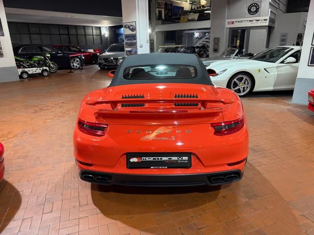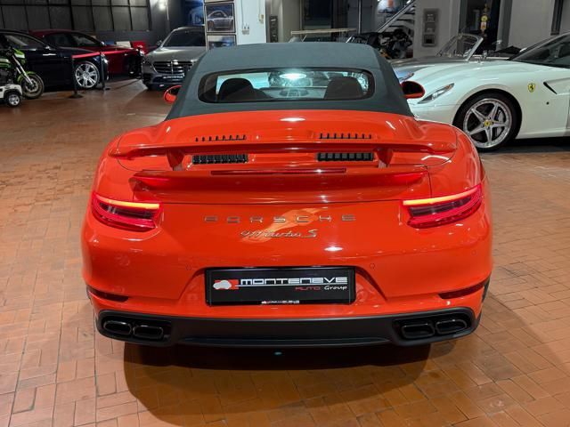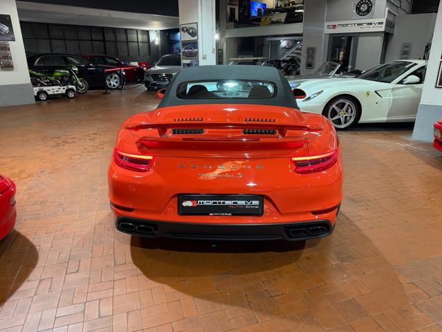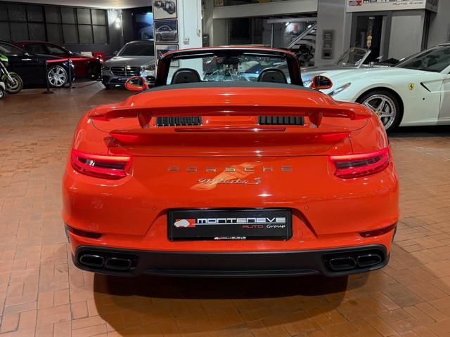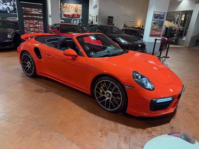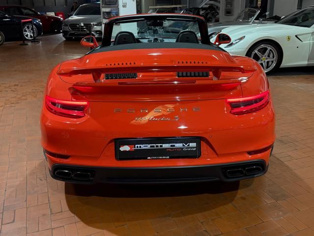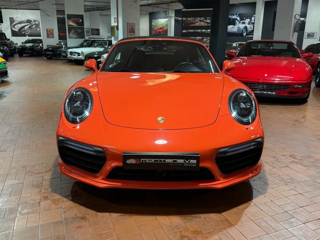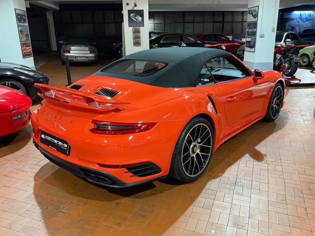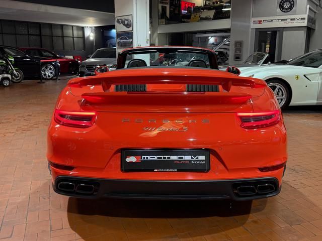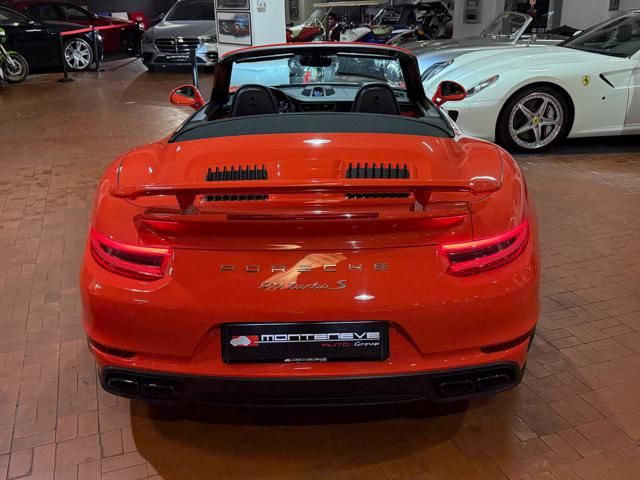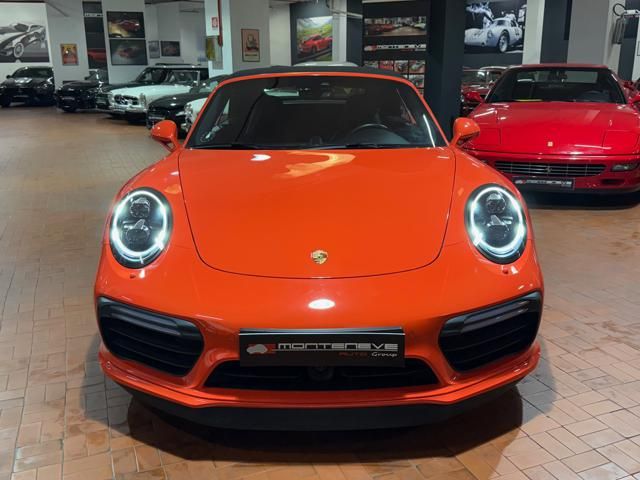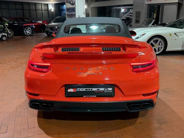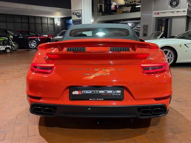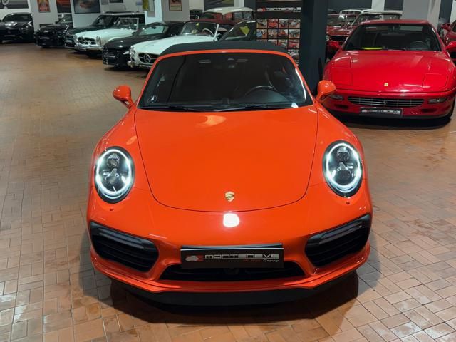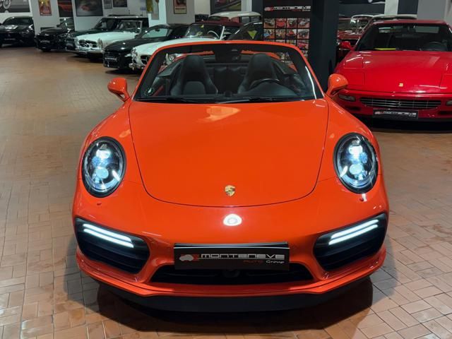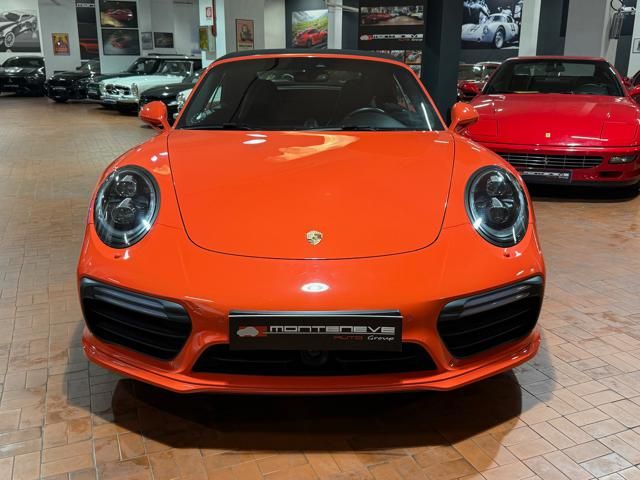 Porsche 991.2 Turbo S Cabriolet 580CV. Exterior: Arancio Lava. Interior: Pelle Totale Nero. Sedili Sportivi elettrici Plus a 18 vie, Sedili Riscaldabili, Sedili Ventilati, Volante Sportivo con comandi multifunzione, Cambio sequenziale al volante, Navigatore Touch Screen, Radio Dab, Bluetooth, Streaming musica, Audio Burmester, Fari Full Led Pdls Plus, Freni Carboceramica, Pinze Gialle, Cerchi mondodado, Inserti in tinta carrozzeria, Minigonne e particolari esterni in tinta carrozzeria, Pacchetto Chrono, Sollevatore Anteriore / Lifting System, Scarico Sportivo, Frangivento elettrico, Porsche Drive Assist, Mantenimento Corsia, Cruise Control Adattivo, Homelink, Pacchetto design luci, Chiavi vetture verniciate in tinta carrozzeria, Servosterzo Plus, Poggiatesta con stemma Porsche, Lavafari verniciati in tinta carrozzeria, Tappo carburante in alluminio, Ptv Plus Porsche Torque Vectoring, Sospensioni regolabili Pasm, Pdcc Controllo telaio, Isofix, Tutti i tagliandi Porsche, Tutta la dotazione originale, Libretti Uso e Manutenzione Originali, Garanzia Ufficiale Porsche Approved. Perfetta. Prezzo comprensivo di iva esposta. Visibile presso la nostra sede di via A.De Viti de Marco 48 Roma. Per informazioni contatto diretto: Federico Anversa cell. 0039 3939487504, Tommaso Costantini cell.0039 3887401695, Telefono ufficio 0039 06.83779867. Per maggiori foto visita: www.Montenevegroup.it. We speak english-Wir sprechen deutsch.