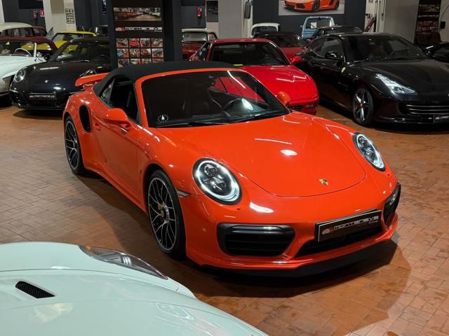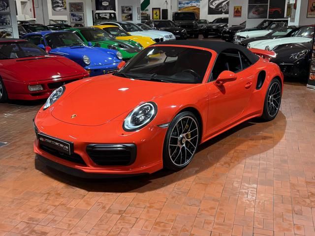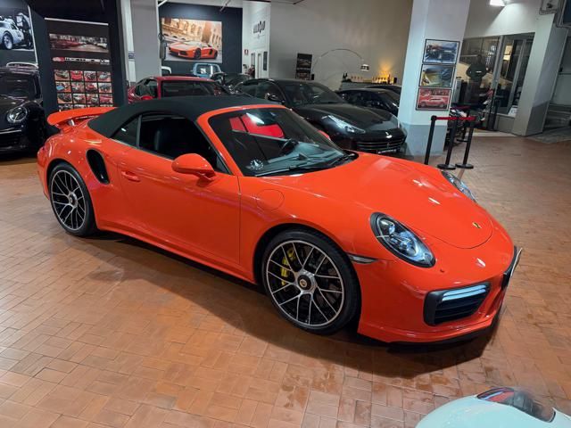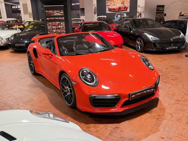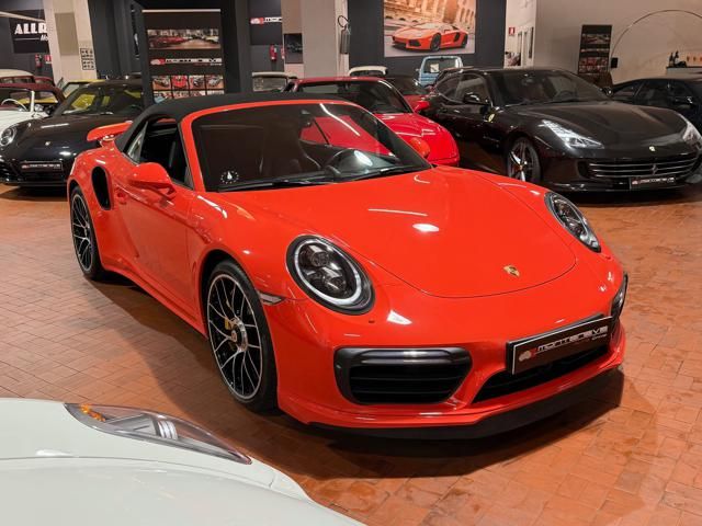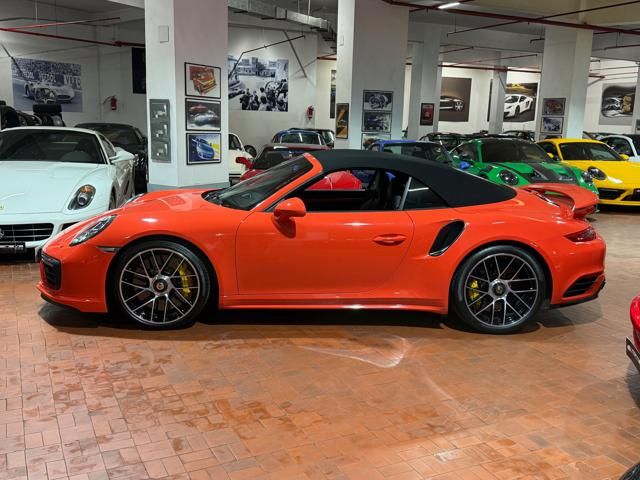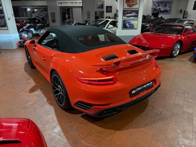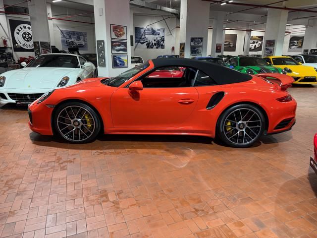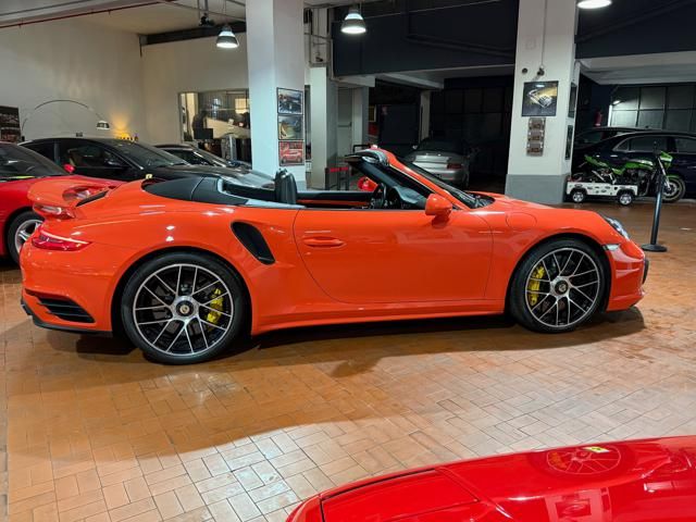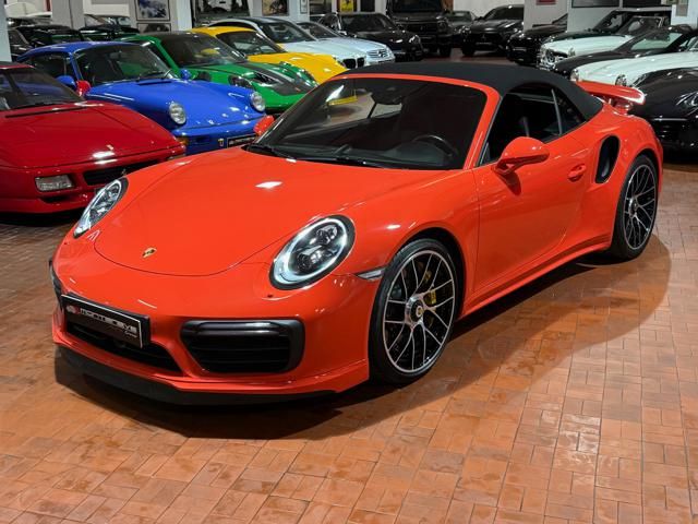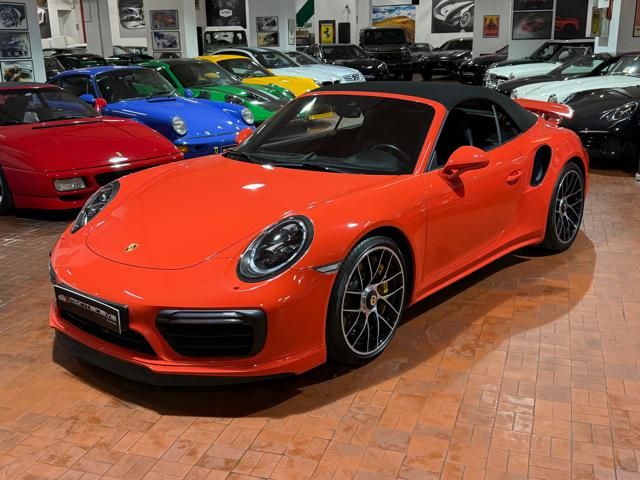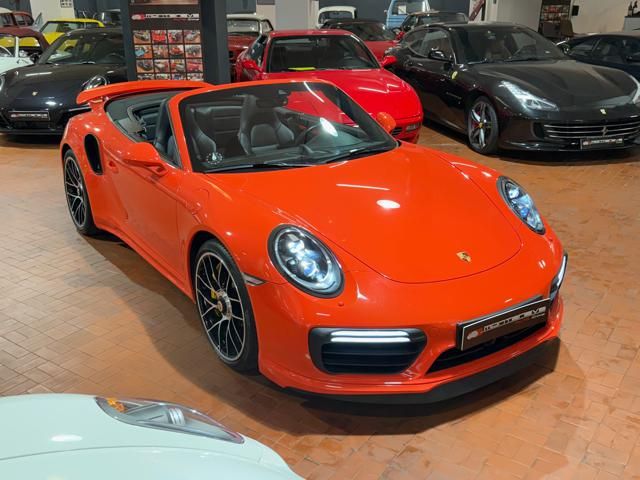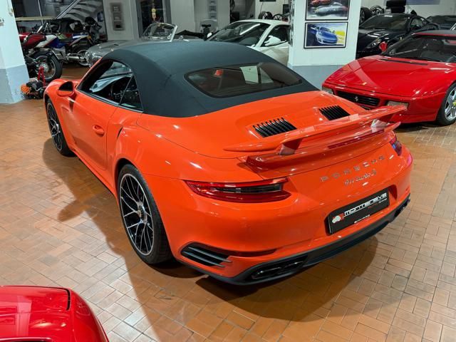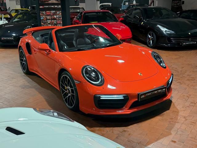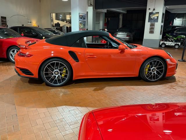 Porsche 991.2 Turbo S Cabriolet 580CV. Exterior: Arancio Lava. Interior: Pelle Totale Nero. Sedili Sportivi elettrici Plus a 18 vie, Sedili Riscaldabili, Sedili Ventilati, Volante Sportivo con comandi multifunzione, Cambio sequenziale al volante, Navigatore Touch Screen, Radio Dab, Bluetooth, Streaming musica, Audio Burmester, Fari Full Led Pdls Plus, Freni Carboceramica, Pinze Gialle, Cerchi mondodado, Inserti in tinta carrozzeria, Minigonne e particolari esterni in tinta carrozzeria, Pacchetto Chrono, Sollevatore Anteriore / Lifting System, Scarico Sportivo, Frangivento elettrico, Porsche Drive Assist, Mantenimento Corsia, Cruise Control Adattivo, Homelink, Pacchetto design luci, Chiavi vetture verniciate in tinta carrozzeria, Servosterzo Plus, Poggiatesta con stemma Porsche, Lavafari verniciati in tinta carrozzeria, Tappo carburante in alluminio, Ptv Plus Porsche Torque Vectoring, Sospensioni regolabili Pasm, Pdcc Controllo telaio, Isofix, Tutti i tagliandi Porsche, Tutta la dotazione originale, Libretti Uso e Manutenzione Originali, Garanzia Ufficiale Porsche Approved. Perfetta. Prezzo comprensivo di iva esposta. Visibile presso la nostra sede di via A.De Viti de Marco 48 Roma. Per informazioni contatto diretto: Federico Anversa cell. 0039 3939487504, Tommaso Costantini cell.0039 3887401695, Telefono ufficio 0039 06.83779867. Per maggiori foto visita: www.Montenevegroup.it. We speak english-Wir sprechen deutsch.