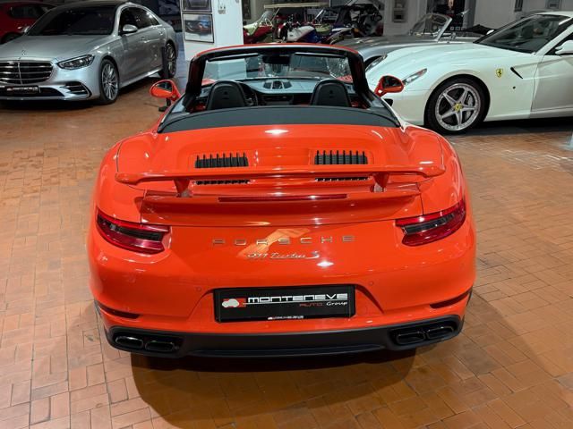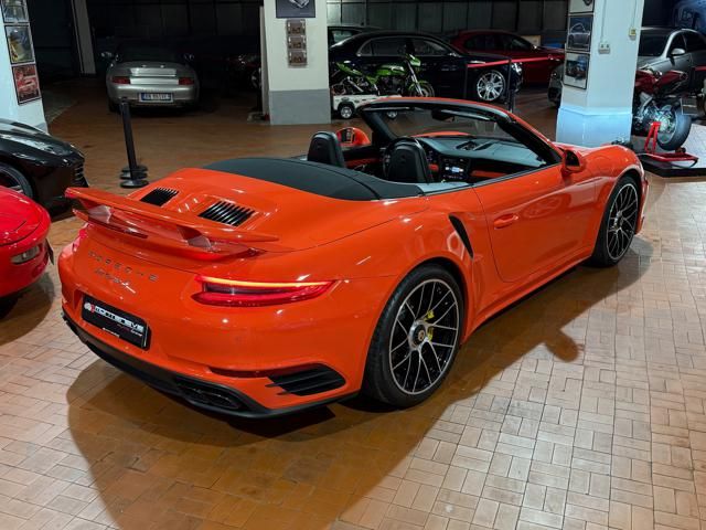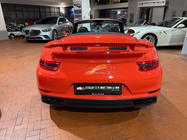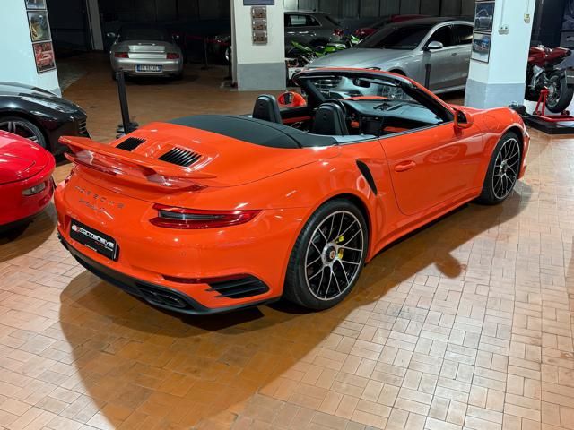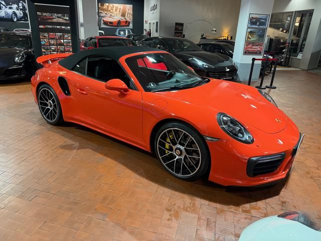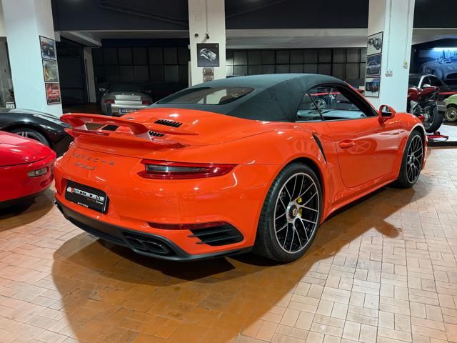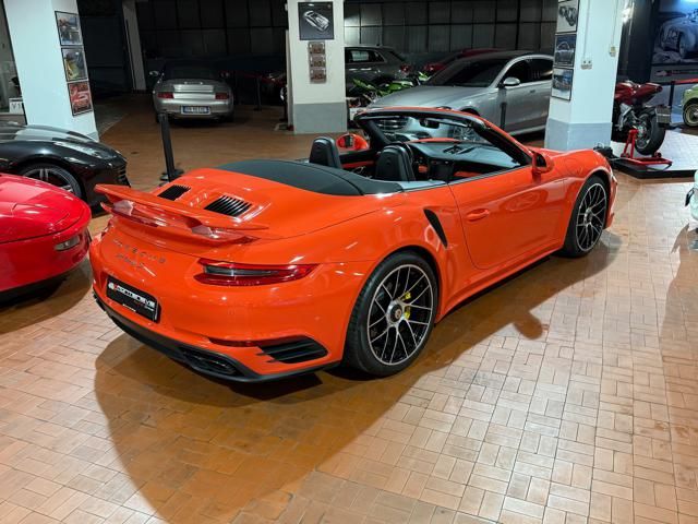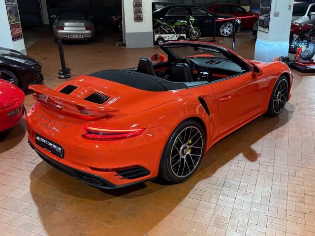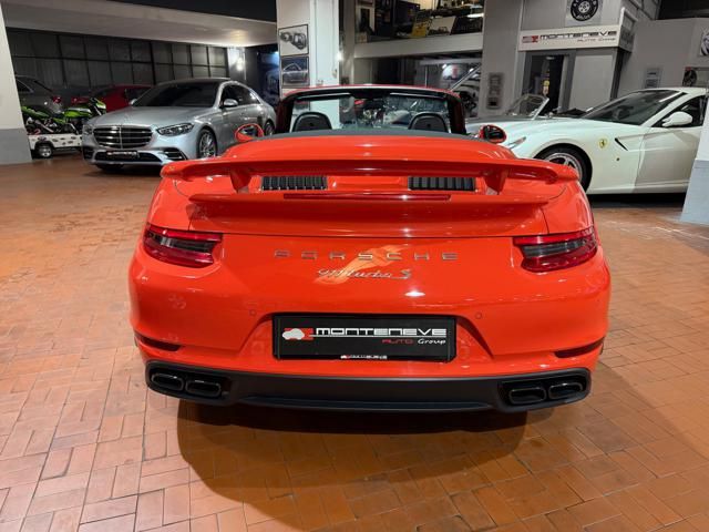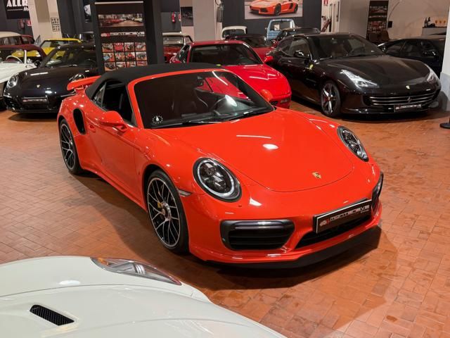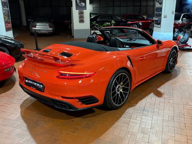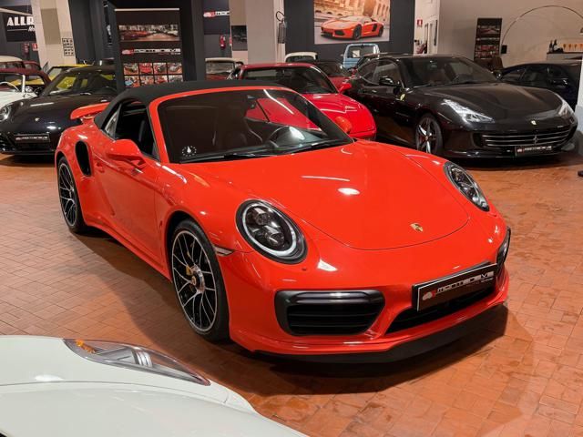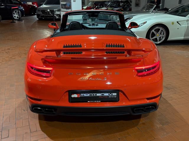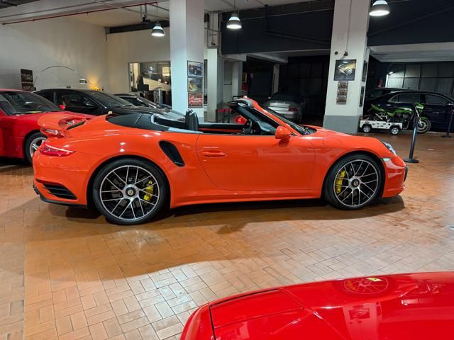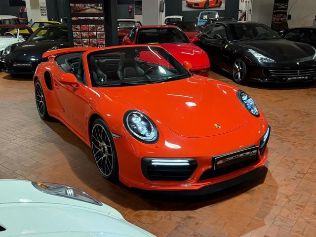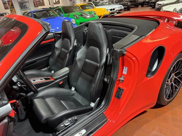 Porsche 991.2 Turbo S Cabriolet 580CV. Exterior: Arancio Lava. Interior: Pelle Totale Nero. Sedili Sportivi elettrici Plus a 18 vie, Sedili Riscaldabili, Sedili Ventilati, Volante Sportivo con comandi multifunzione, Cambio sequenziale al volante, Navigatore Touch Screen, Radio Dab, Bluetooth, Streaming musica, Audio Burmester, Fari Full Led Pdls Plus, Freni Carboceramica, Pinze Gialle, Cerchi mondodado, Inserti in tinta carrozzeria, Minigonne e particolari esterni in tinta carrozzeria, Pacchetto Chrono, Sollevatore Anteriore / Lifting System, Scarico Sportivo, Frangivento elettrico, Porsche Drive Assist, Mantenimento Corsia, Cruise Control Adattivo, Homelink, Pacchetto design luci, Chiavi vetture verniciate in tinta carrozzeria, Servosterzo Plus, Poggiatesta con stemma Porsche, Lavafari verniciati in tinta carrozzeria, Tappo carburante in alluminio, Ptv Plus Porsche Torque Vectoring, Sospensioni regolabili Pasm, Pdcc Controllo telaio, Isofix, Tutti i tagliandi Porsche, Tutta la dotazione originale, Libretti Uso e Manutenzione Originali, Garanzia Ufficiale Porsche Approved. Perfetta. Prezzo comprensivo di iva esposta. Visibile presso la nostra sede di via A.De Viti de Marco 48 Roma. Per informazioni contatto diretto: Federico Anversa cell. 0039 3939487504, Tommaso Costantini cell.0039 3887401695, Telefono ufficio 0039 06.83779867. Per maggiori foto visita: www.Montenevegroup.it. We speak english-Wir sprechen deutsch.