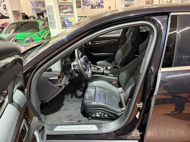 Porsche Panamera Turbo S 630CV. Una delle poche Turbo S NON ibride. Ufficiale Porsche Italia. Parcourto in Nero Jet Metallizzato con Pelle totale Nera. Terminali Scarico Neri Porsche Exclusive manufaktur. Sedili sportivi plus, riscaldabili e ventilati. Navigatore, Fari Full LED adattivi Matrix, Freni Carboceramica, Tetto panoramico, Audio Bose. Sospensioni regolabili, Chrono, Cerchi in lega, Scarico Sportivo, Porsche Drive Assist, Cruise control adattivo, Chiusura soft portiere. Configurazione 5 posti. Ionizzatore, Luci ambiente, Telecamere 360, Tagliandi Porsche, Libretto tagliandi originale. Tutta la dotazione originale. Disponibile presso la sede di Roma.