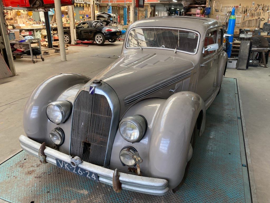 Rare, special 1949 Talbot Lago T26 with original 4.5L 6-cylinder engine. The car has a good, solid body and floor. The interior is complete and neat, with the original clocks in the dashboard. This is a great project for restoration or making it perfect. Only 750 of these cars were produced, making it an extremely rare example. Please contact us for more information or a viewing. NOW avaialble for a VERY interesting price .!! Big choice in REAL Classic Cars in the Stolze Collection ! From a project to perfect.\n\nInterested? Please contact us.!\n\nPlease fill in the form and we contact you as soon as possible!\n\nName:*\n\nE-mailaddress:*\n\nTelephone:\n\nQuestion:*\n\n*required field